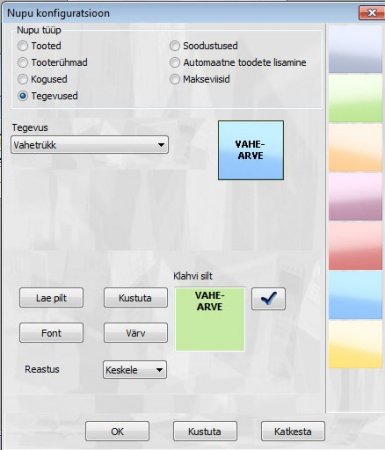 Uute värvide aktiveerimiseks tuleb teil Majahalduri menüüst liikuda Klaviatuuride paneelile. Sealt avate Nupu konfiguratsiooni akna ning uute värvide valik on akna paremas servas. Sobivat värvi klikates muutub ka nupu värv.
