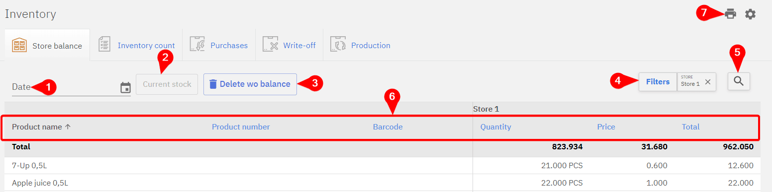 Store balance provides a real-time or retroactive overview of product quantities in store