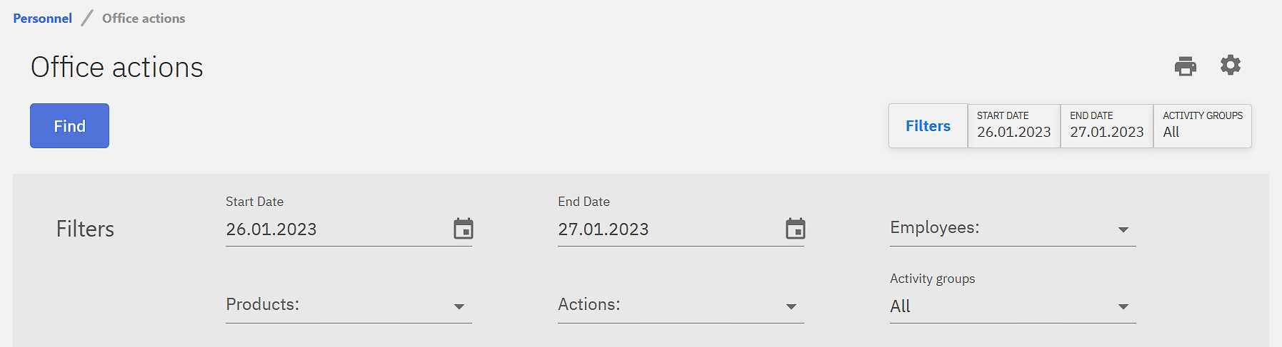 By pressing the filter button the logs can be filtered based on actions, products and activity groups. In addition it’s possible to filter these results by employees, to see exactly when and by who an action was performed by. This is one of the main reasons to why every employee should have his or her own personal account for Compucash, providing security and allowing to monitor users activity in the office program.