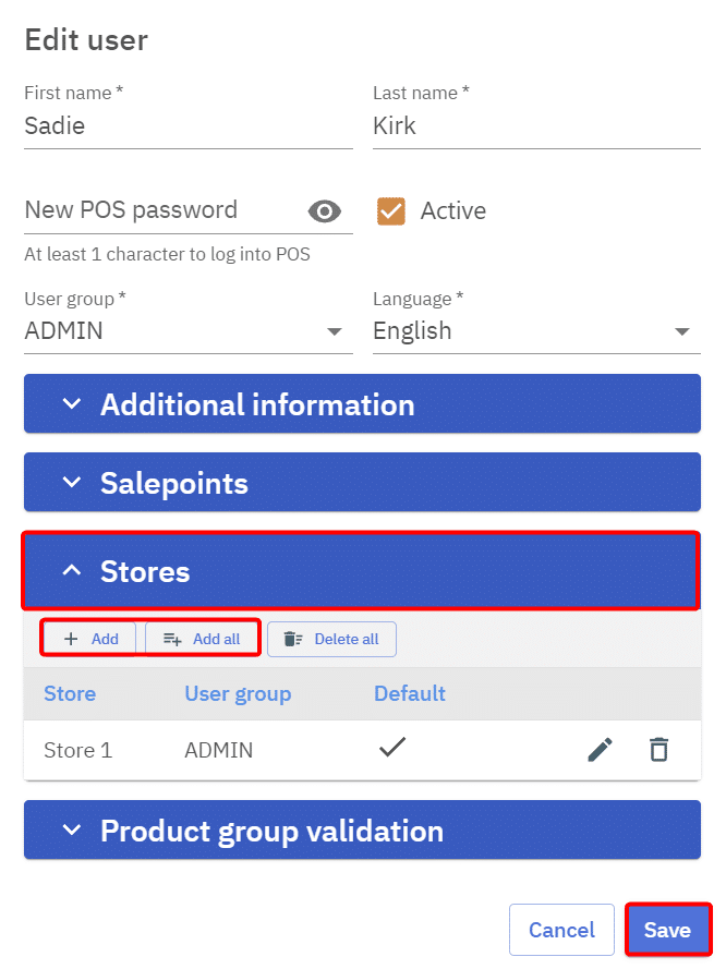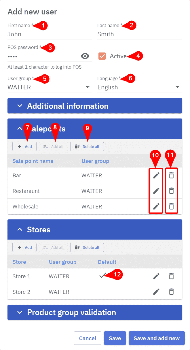12 – Default store, determines which store will be automatically selected when the user logs in