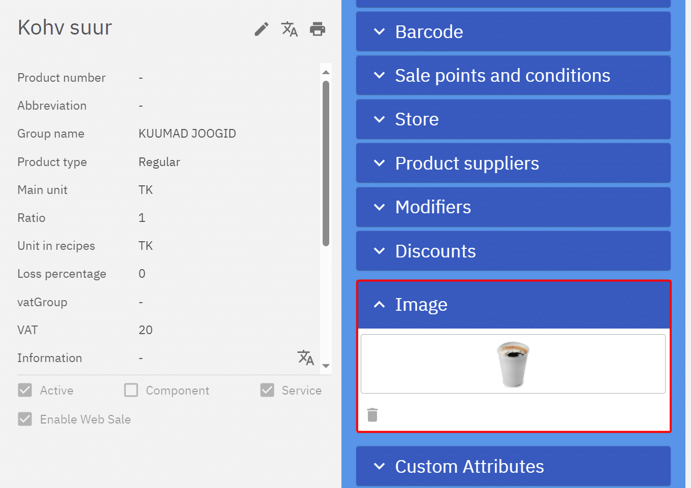 The Tellikohe.ee environment supports multiple languages, so translations can be set for both groups(categories) and products. By default, the product and group names are displayed in the web as they are in the system, using translations custom product/group names can be set for the web environment.
