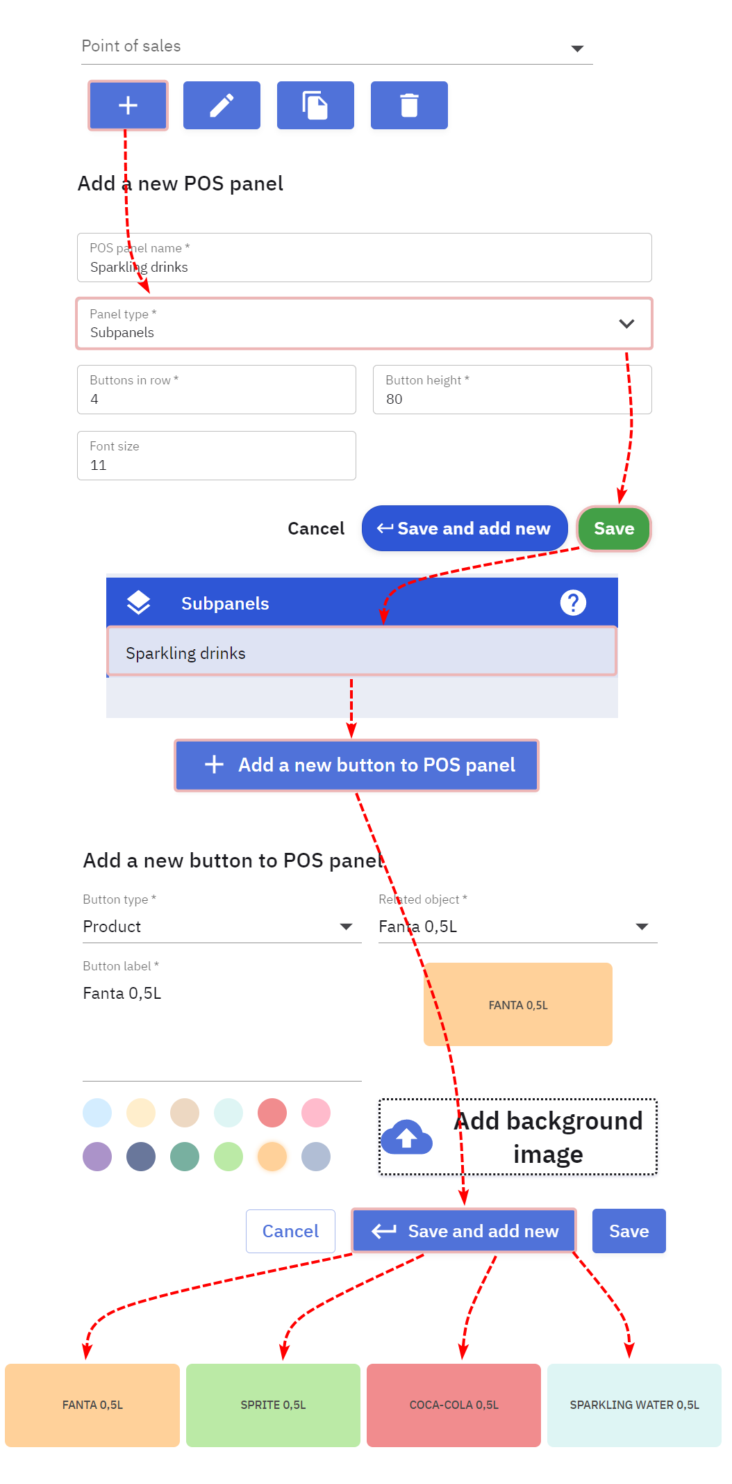 Product panel – This panel is for products and product groups and one POS can have multiple product panels.