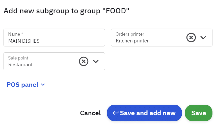 From the POS Panel tab, you can add a button for the group or buttons for the products in the group to the POS panel. This is not mandatory and can be done separately later.