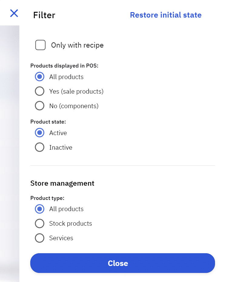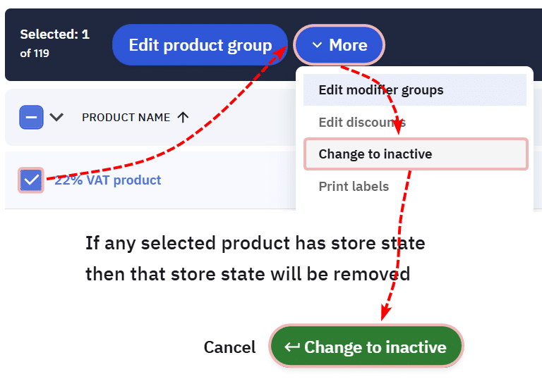 If you wish to remove a product from sale, you need to deactivate it; then, by default, it is no longer displayed in the back office or POS.