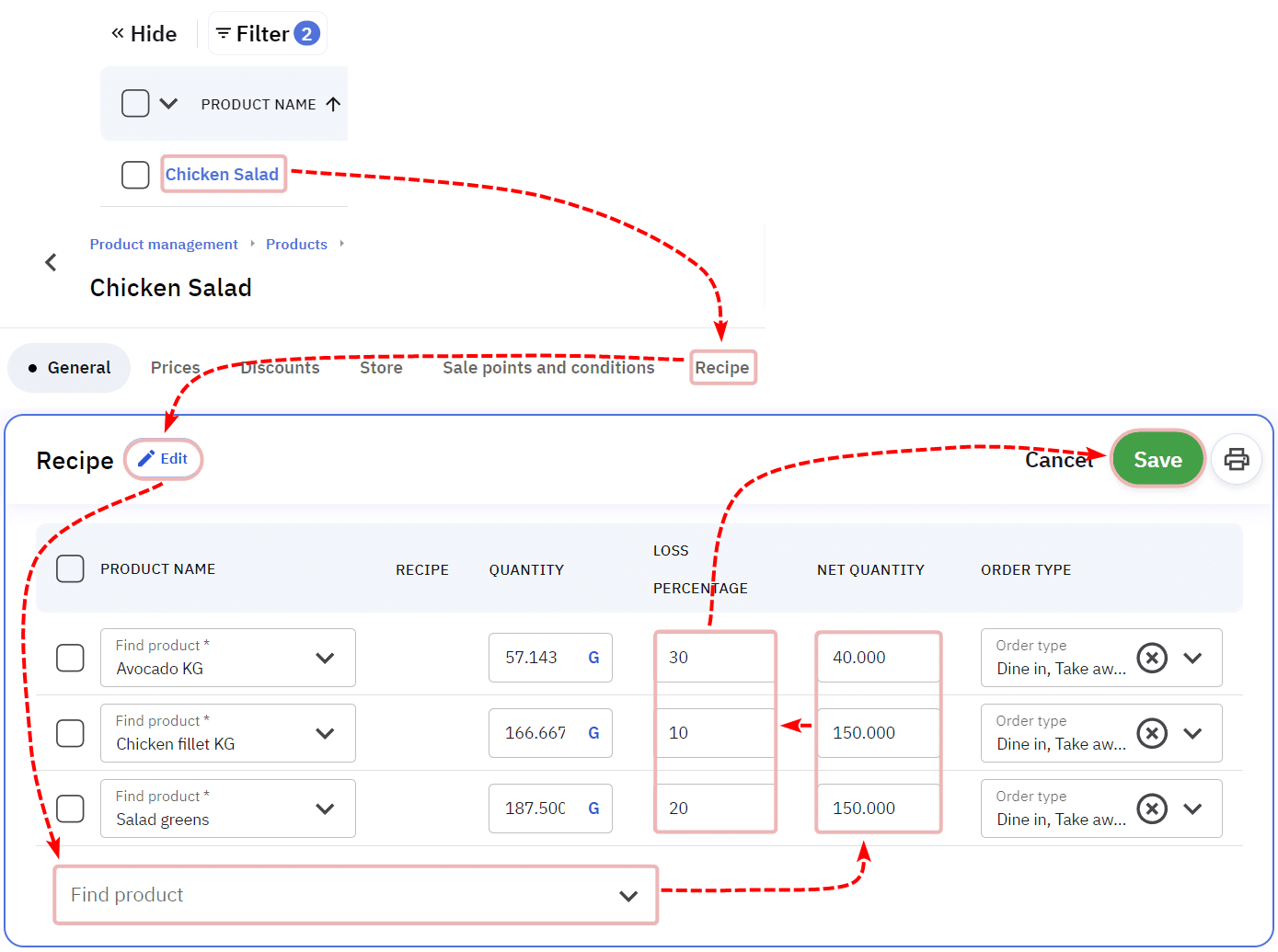 However, if the products are already created, it’s not a problem; the recipe can be added later from the product card.