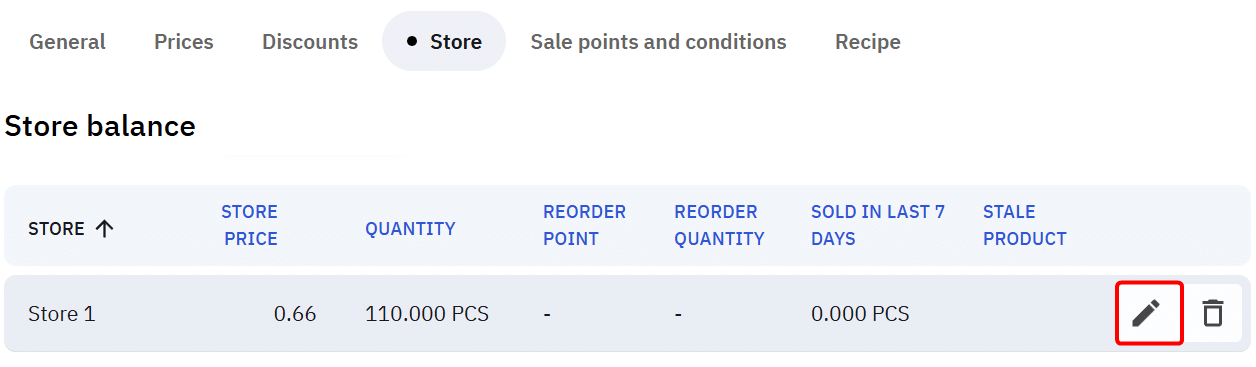 Under Stock Adjustment, you can create a mini-inventory where you can set a new stock level or warehouse price for the product.