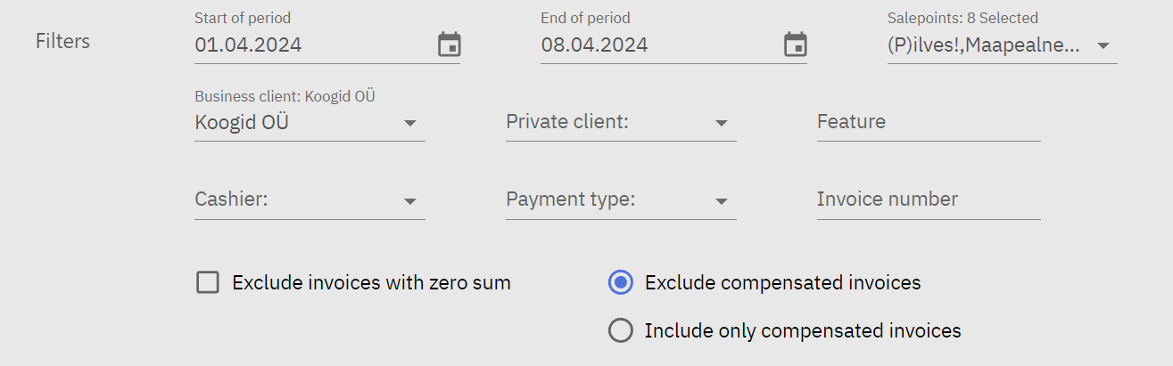 Default filter lists current month’s invoices for the selected customer. If an invoice is not listed by default it can be filtered.