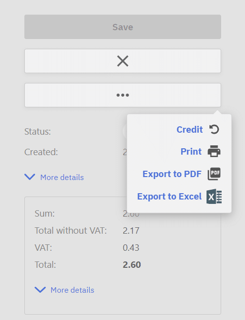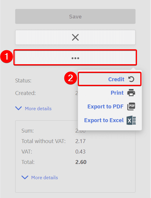 Web office allows the user to cancel incorrectly made invoices. This can be done by clicking Cancel invoice.