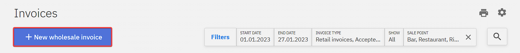 Invoice registry can be used to monitor all invoices and to create wholesale invoices. Invoices are located under Sales and Invoices. By default, the invoices are displayed in chronological order with newer invoices being on top.