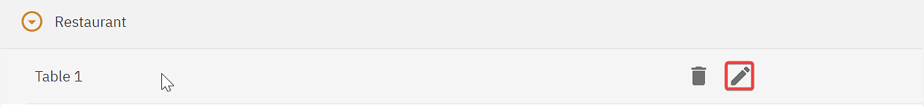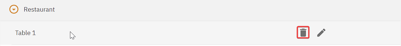 Tables can be added to a sale point by hovering on the sale point name and clicking the Add button