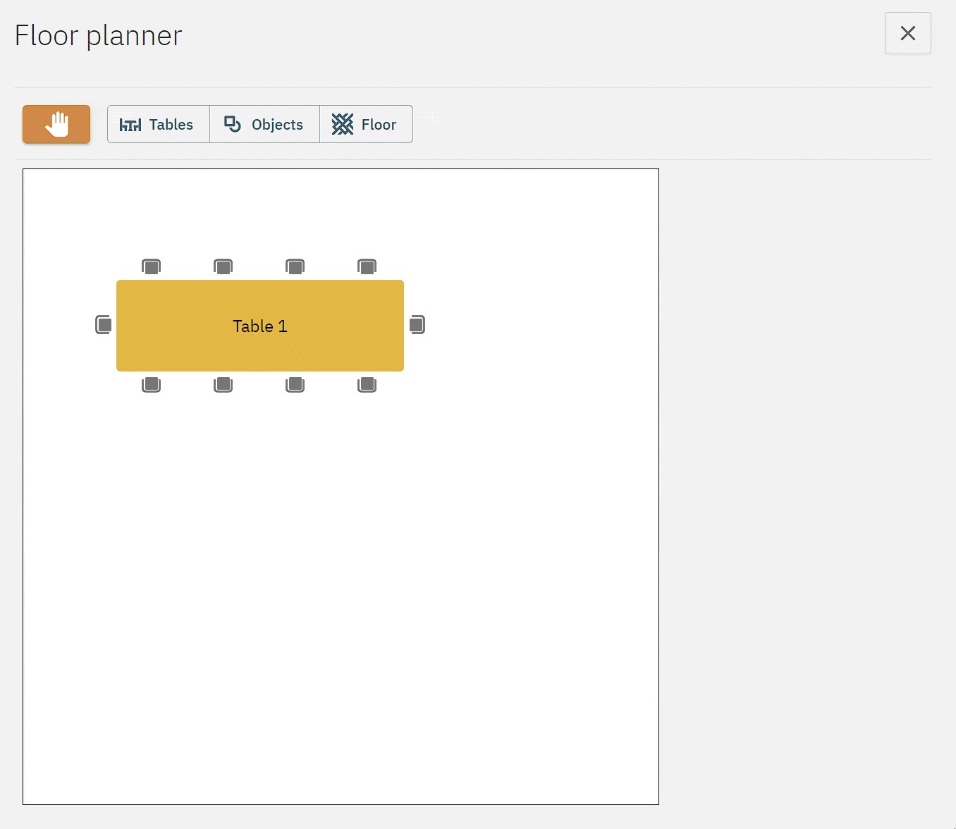 Tables can be added by selecting Tables, then either by dragging on the floor plan or clicking Add table on the right.