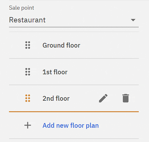 The order in which the floor plans are displayed in the POS can be changed by dragging the floor plans.
