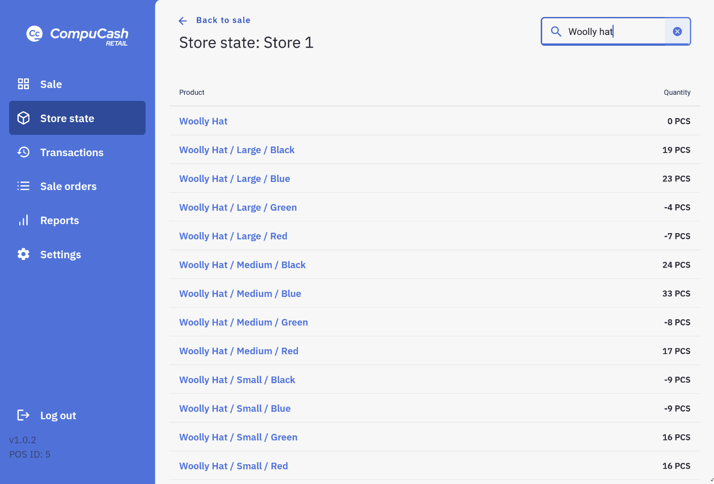 Retail POS enables the worker to quickly check store states for products. Store states can be viewed under Store state.