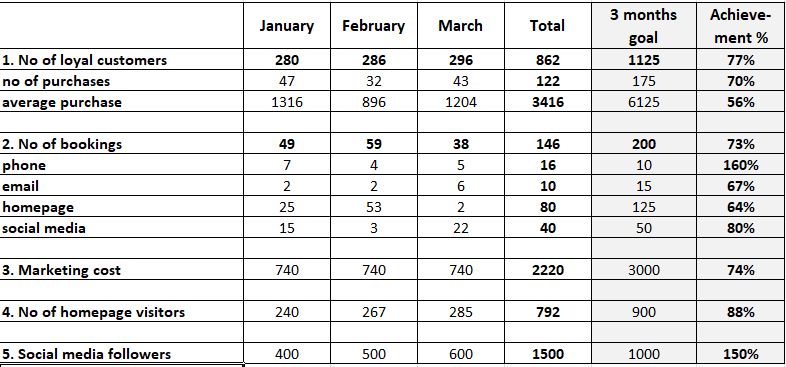 - how many booking of tables are done and through which channels (phone, email, homepage, social media)