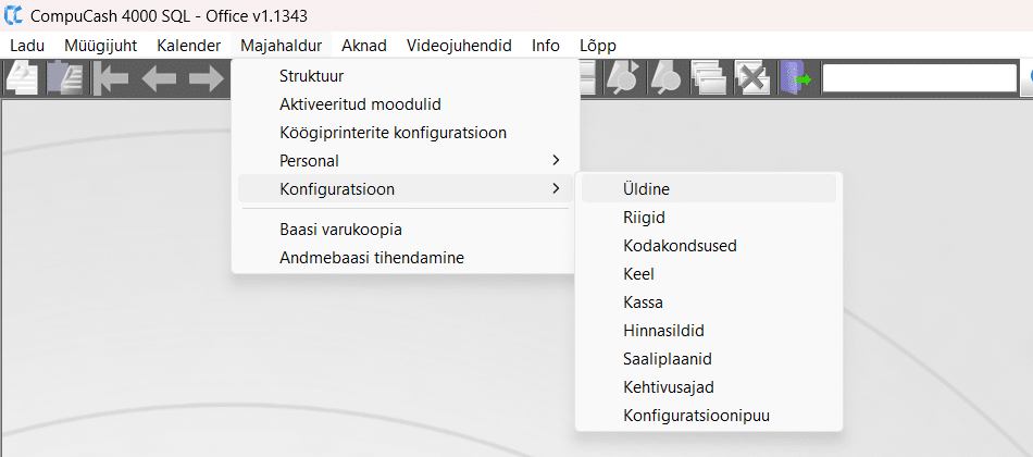 Firma üldise käibemaksu muutmiseks on vaja navigeerida Majahaldur>Konfiguratsioon>Üldine