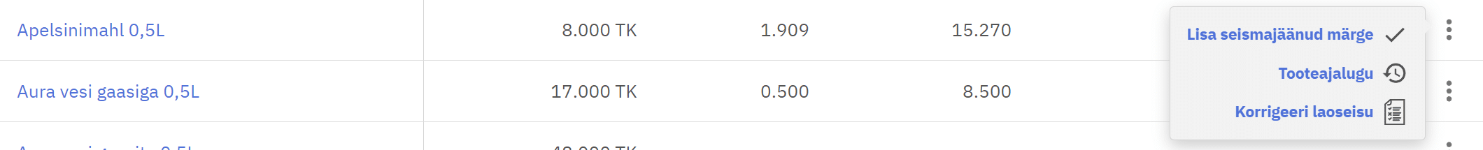 Lisa seismajäänud märge – võimalik lisada tootele käsitsi seismajäänud märge, selle põhjal on võimalik teha hiljem näiteks tootele allahindlust