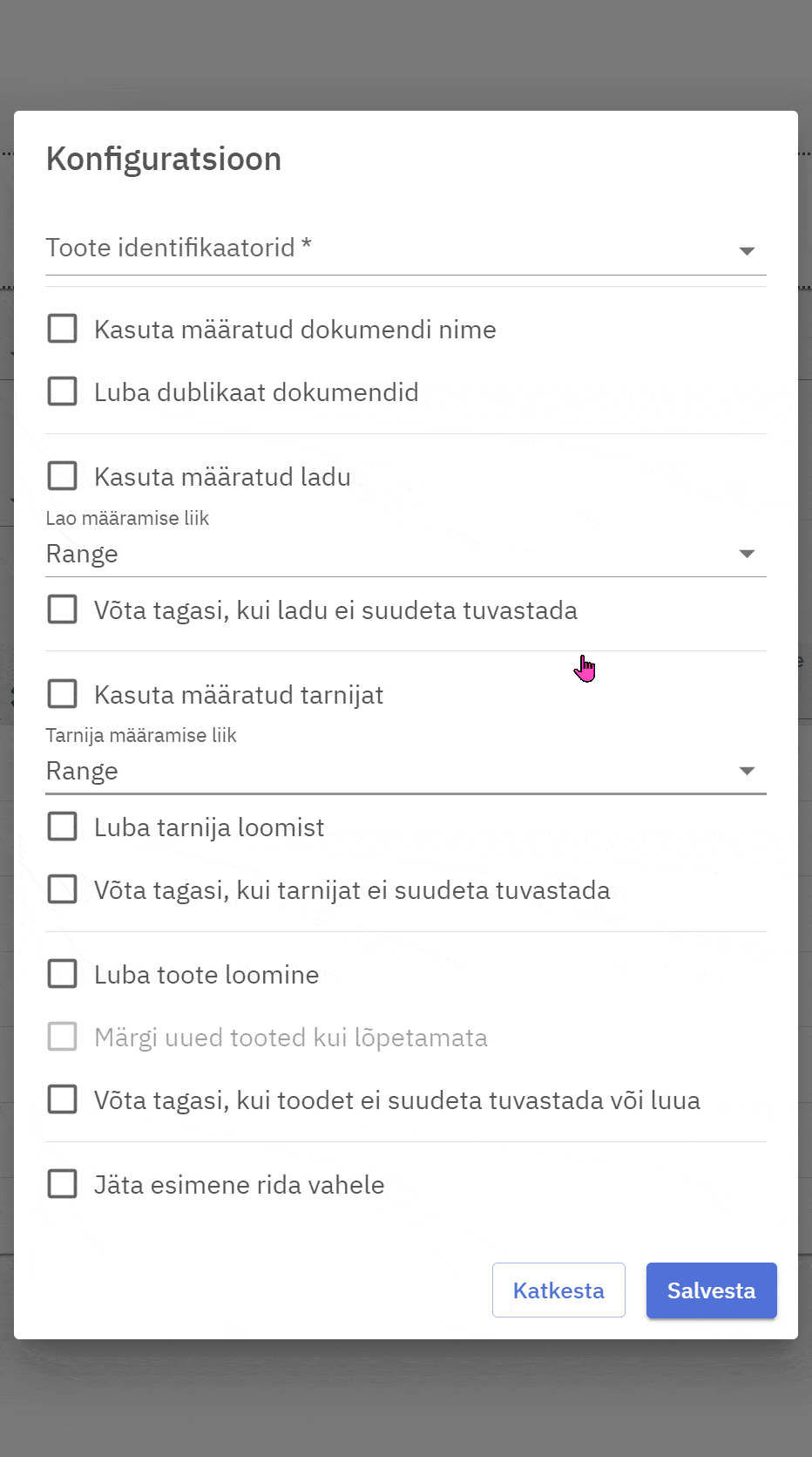 Viimase sammuna ennem importimist tuleb muuta ka Konfiguratsiooni.