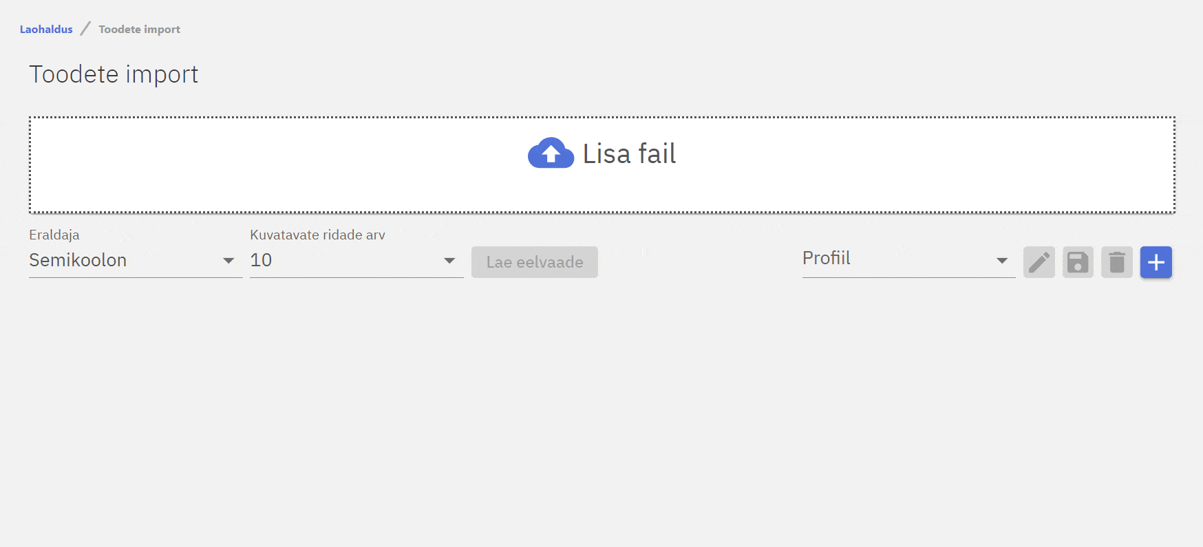 Vaikimisi – see profiil laetakse toodete importimisel vaikimisi