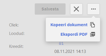 Dokumendi krediteerimine / tühistamine ja kopeerimine