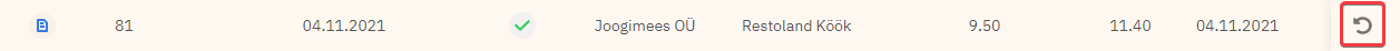 Krediteerimiseks vii kursor dokumentide nimekirjas dokumendi reale ning misjärel ilmub rea lõpus nähtavale Krediteeri nupp.