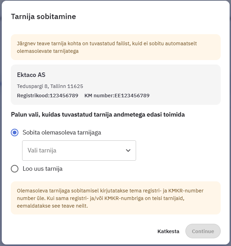 Siin aknas saab üle kontrollida tarnija arve ning imporditava arve vastavuse. Ebakõlade puhul (nt. summade mitte klappimine) teavitatakse sellest.