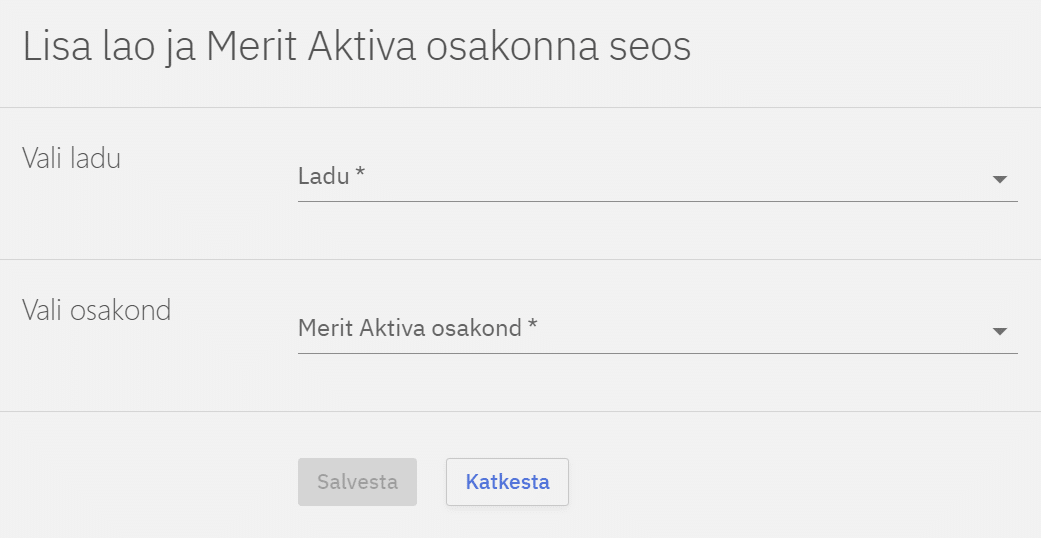 Ostu ekspordil tuleb siduda Compucashis olevad laod osakondadega Meritis, seda saab teha vajutades Lisa lao ja Merit Aktiva osakonna seosed. Avanenud aknas saab valida rippmenüüst Compucashi lao ja sellele vastava osakonna Meritis.