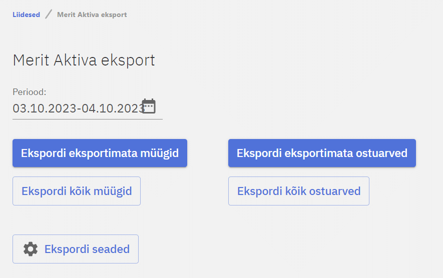 Käsitsi on võimalik eksporti teha minnes Liidesed ja Merit Aktiva eksport. Sealt saab valida perioodi ja vajutades vastavat nuppu.