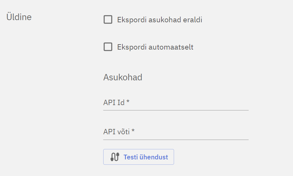 Esmalt tuleb sisestada Compucashi Merit Aktiva API andmed. Seda saab teha minnes Liidesed ja Merit Aktiva. Moodulis tuleb valida Ekspordi seaded.
