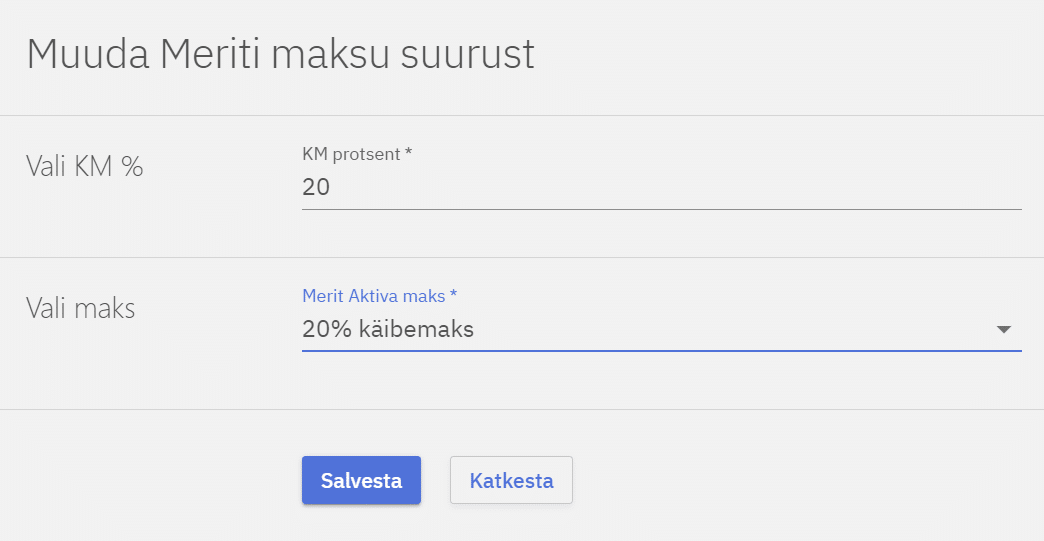 Vajutades Lisa Merit Aktiva maksu suurus saab seadistada üldiseid firma käibemaksu seadeid. Tuleb valida KM suurus Compucashis ja temale vastav maks Merit Aktivas. Compucash ei erista 0% ja KM-vaba artiklit, saab valida ainult 0.