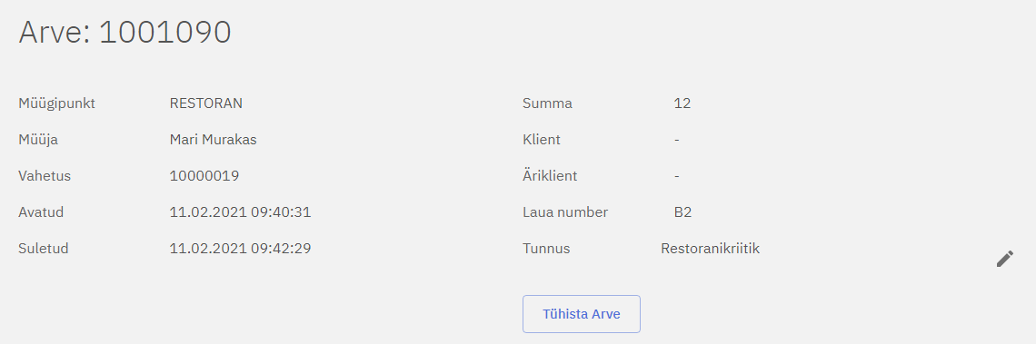Siit saab jälgida kassas ja kontoris (hulgiarve) tehtud arveid. Arved on vaikimisi kronoloogilises järjestuses, kus värksemad arved asuvad nimekirjas ülalpool.