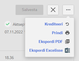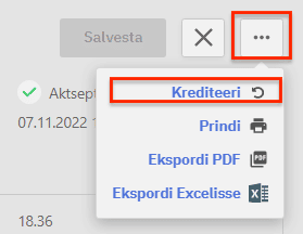 Valesti vormistatud või tühistamist vajavale hulguarvele saab teha kreeditarve. Vajutades nuppu “Krediteeri” luuakse uus arve negatiivsete summadega, see tuleb salvestada ning aktsepteerida.