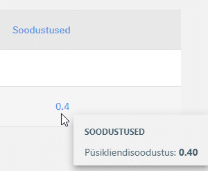 ’Soodustused’ lahtris on näha reale rakendunud soodustuse summa ning viies kursori summale, avaneb kiirvaate aken, kus on näha täpsem info soodustuse kohta.
