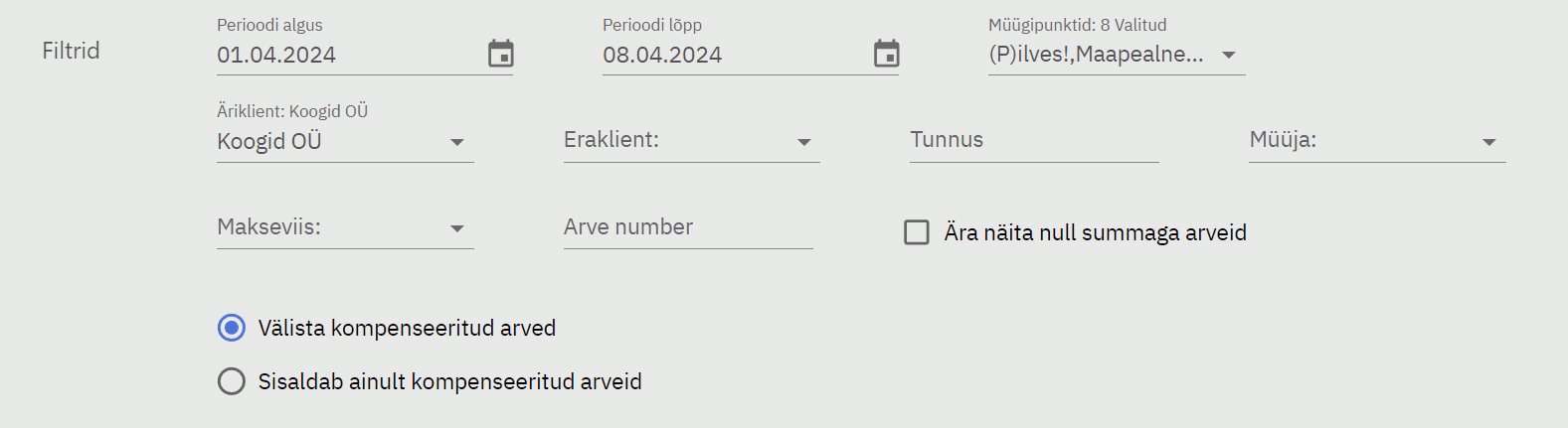 Vaikimisi pakutakse koondarvele lisamiseks eelnevalt valitud kliendi arveid käesolevas kuus, kui on vaja lisada müüke mida vaikimisi ei kuvata saab neid otsida filtri alt.