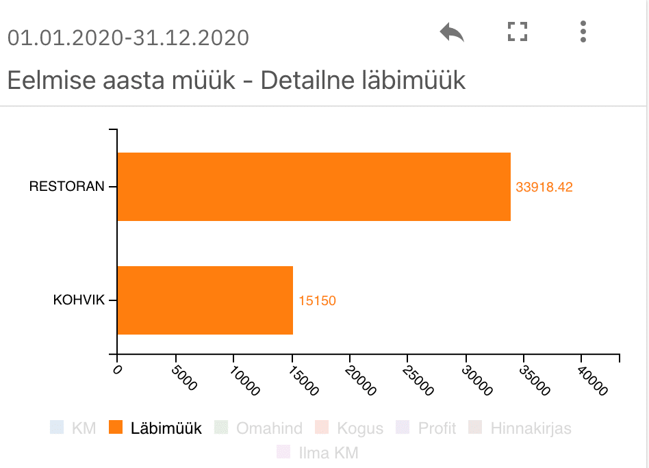 - Valikust valige andmete tüüp. Praegu on saadaval 12 võimalust: läbimüük, külastajate arv, keskmine arve külastaja kohta jne.