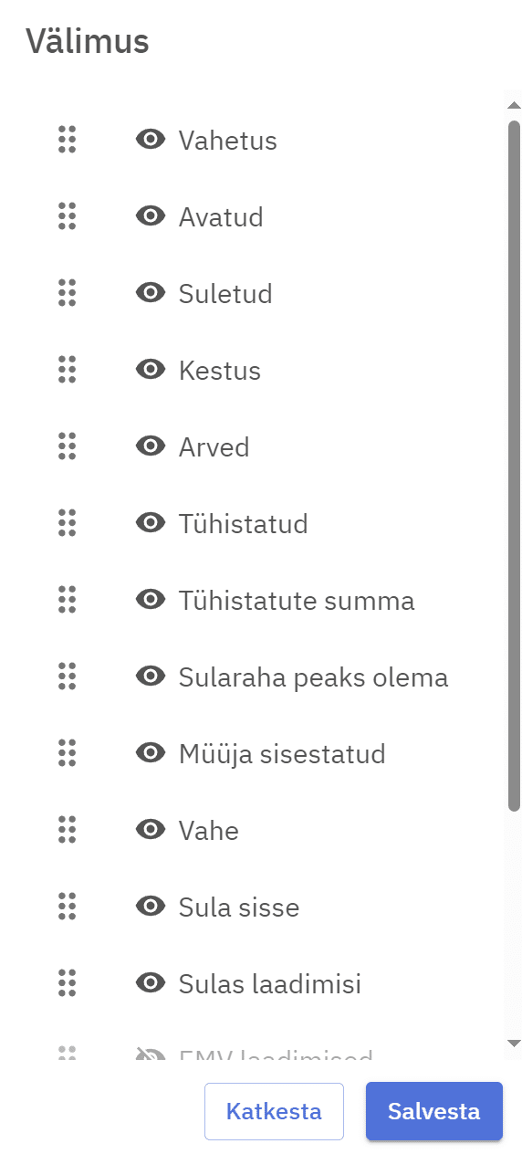 Välimuses saab muuta kuvatavaid välju vajutades silma peale ja väljade järjekorda tirides 6 punkti peal.