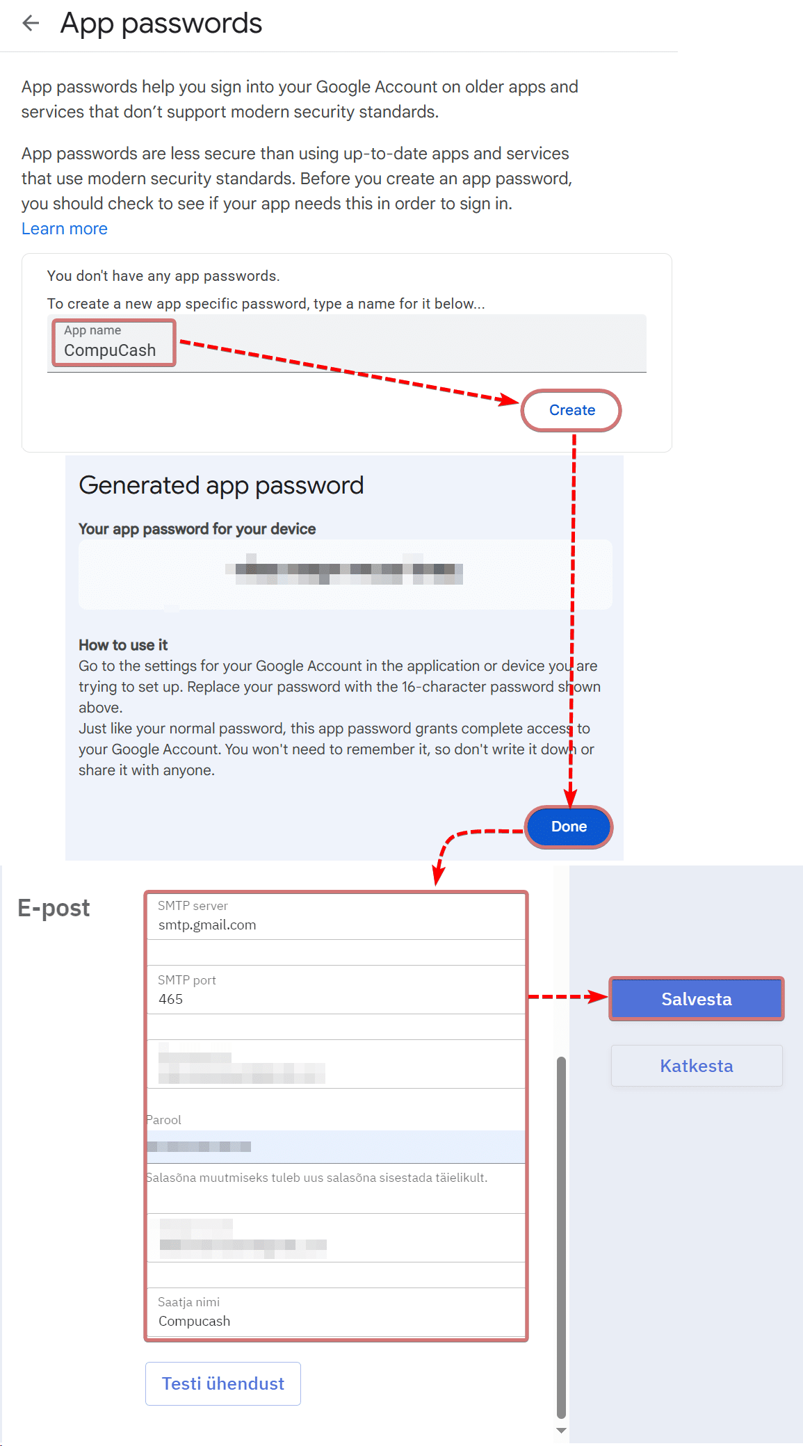 Google nõuab kolmandale osapoolele (Compucashile) loa andmiseks, et kasutuses oleks kaheastmeline autentimine. Seda saate seadistada vajutades LINK-i ja logides Google kasutajaga sisse.