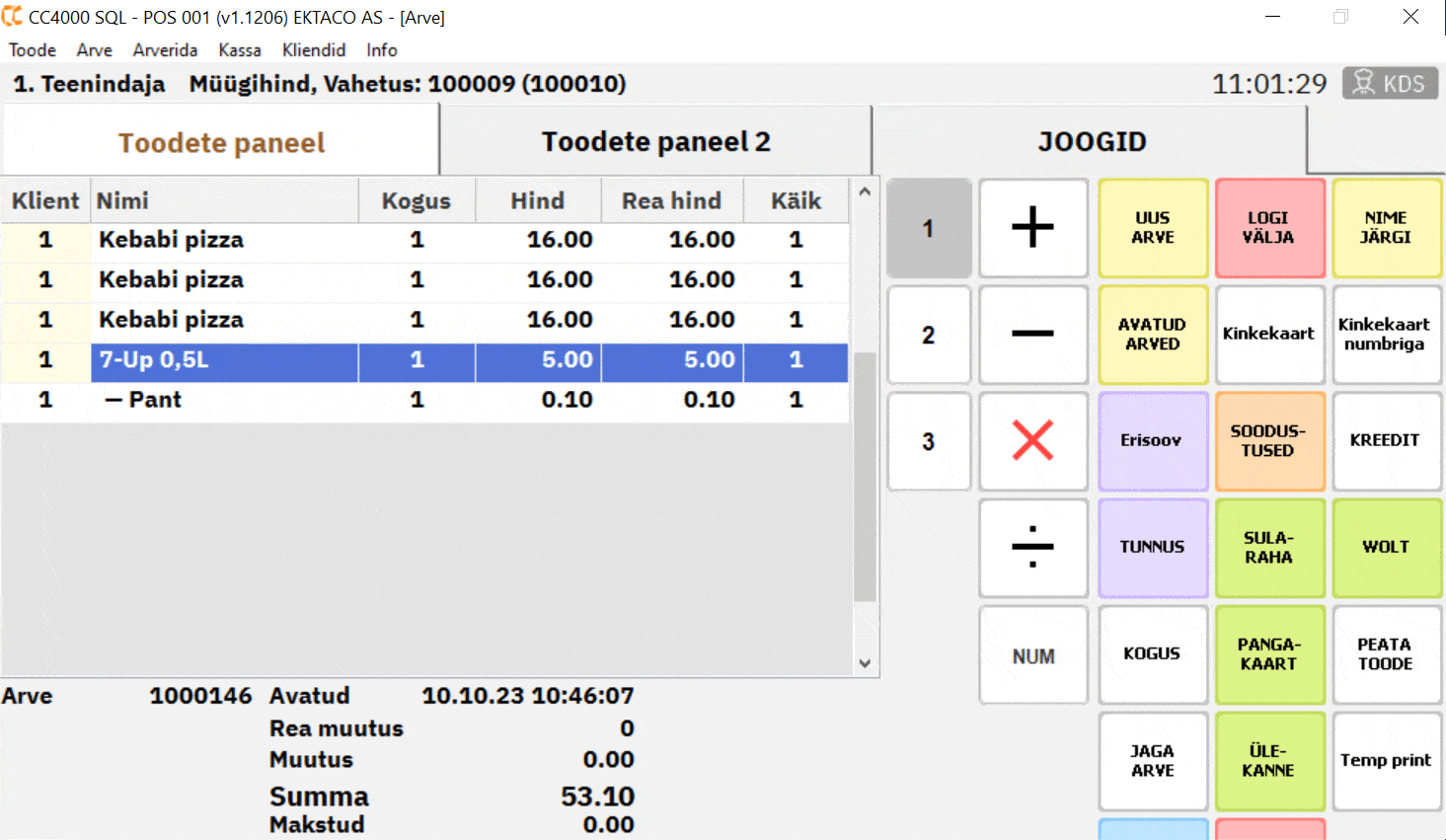 Numbriga kinkekaardi lunastamine CC4000 kassas
