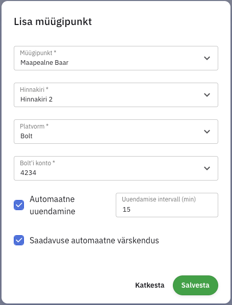 Müügipunkti lisamine