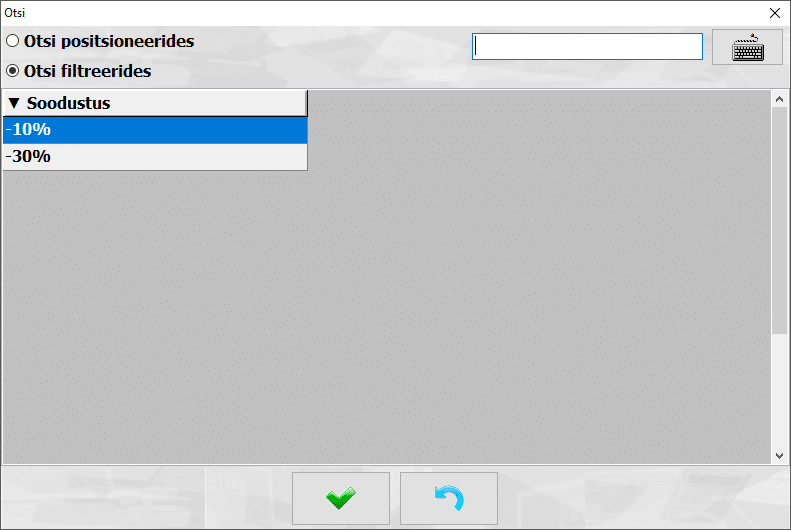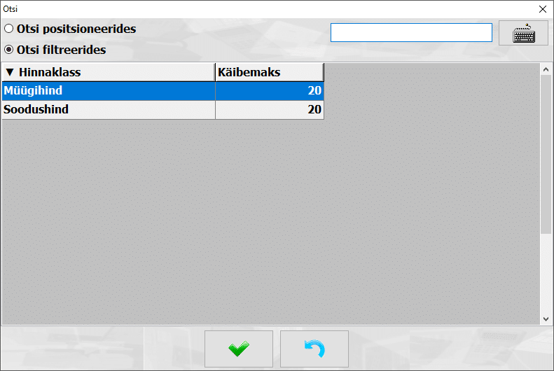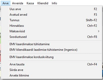 Hinnaklass – võimaldab rakendada müügiks teist hinnakirja. See on üldiselt vähe kasutatav funktsioon ning arvestada tuleb sellega, et viimasena valitud hinnakiri kehtib seni, kuni see tagasi vahetatakse.