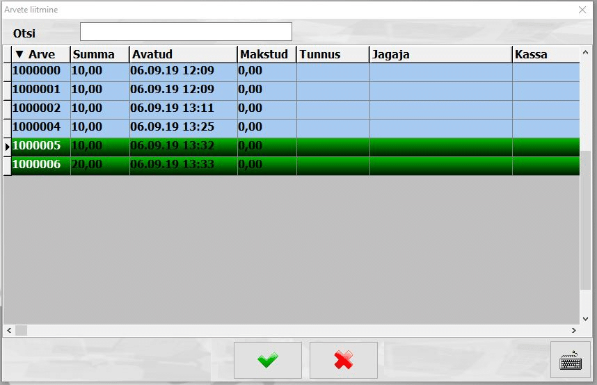 - kõiki nii enda kui teiste teenindajate arveid – kui kassa on seadistatud kõiki arveid automaatselt jagama