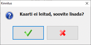 Kui sisestada tundmatu kaardinumber, siis kassa annab vastava hoiatuse või kui on luba kaardiandmeid sisestada, siis pakub seda.
