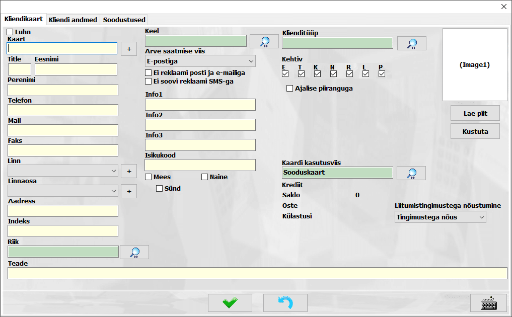 Soodustused – saab rakendada käsitsi võimalike soodustuste hulgast vajalikku. Soodustused peavad varasemalt olema kontoris seadistatud.