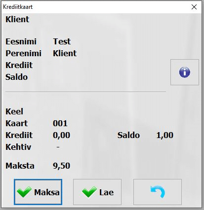 Krediitkaardi peale saab klient laadida krediiti, millega ta hiljem maksta saab.