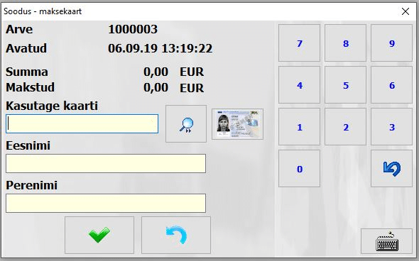 Kaardinumbrit või kasutaja nime on võimalik ka käsitsi sisestada, selleks peab olema tehtud vastav häälestus, mis neid tegevusi lubab.