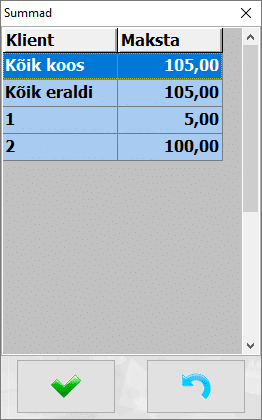 „Kõik eraldi“ – prinditakse igale kliendile eraldi vahearve ainult temale määratud toodetega