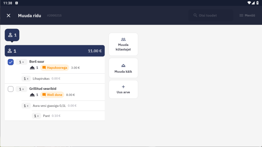 Muuda külastajat – saab muuta, millisele lauas olevale külastajale arverida kuulub