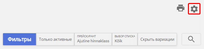 Поля и порядок полей, отображаемых в виде списка товаров, можно редактировать, нажав на шестеренку в правом верхнем углу.