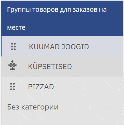 Продукты отображаются в сети в указанном здесь порядке; если вы хотите изменить порядок категорий или порядок продуктов в категориях, вы можете перетаскивать строки с 6 точек.