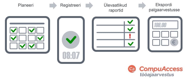 Kuigi seadusega on ette nähtud, et tööajaarvestust peab pidama tööandja, siis vorminõuet sellele kehtestatud ei ole ning tööajaarvestuse pidamine on lubatud nii otse paberkandjal, Exceli tabelis kui ka digitaalses tööaja arvestuse lahenduses. Tööaja arvestus on kõige lihtsam selleks välja töötatud programmis. CompuAccess võimaldab ühes ja samas süsteemis tööaega planeerida, mõõta, analüüsida ning arvestada. Suur osa käsitsi sisestamisi kaob programmi kasutusele võtmisega ära, mis teeb tööaja arvestamise protsessi nii lihtsaks kui vähegi võimalik ja sobib nii väikeettevõttele kui ka suurtele tehastele. Seadus ei kehtesta vorminõuet tööaja arvestuse pidamisele. See tähendab, et sul on õigus seda pidada nii paberil, excelis kui ka digitaalses tööaja arvestuse lahenduses. Tööajaarvestuse lahendusega saab: