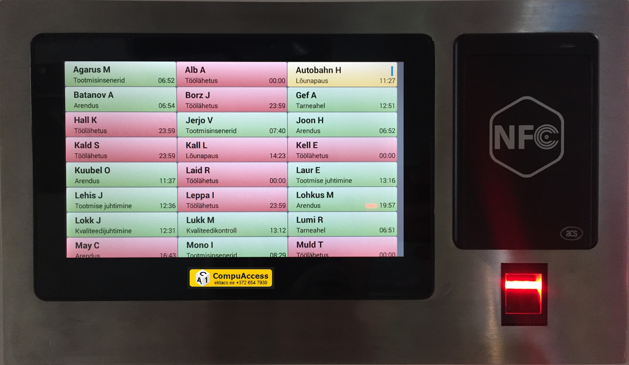 Ektaco uusim toode CompuAccess vastas ootustele ning nüüd on tehase seintel kümme registraatorit, kus sajad tehase töötajad mitmes vahetuses salvestavad oma tööde algus- ja lõppajad, sh palju erinevaid tööliike, ning lõunapausid.